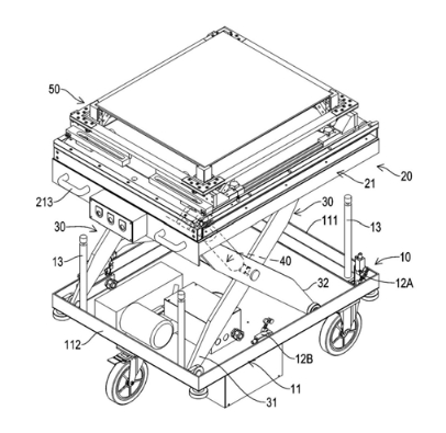 本发明涉及小车领域,特别涉及一种自动升降小车。其设有驱动压缸来驱使两X型支架作动,使置放于上框架的承载盘能随着上框架而升降,不需要透过人力来抬升或下放承载盘,能减少工作人员体力上的负荷与受伤的机会;上框架所枢设的卡扣件能与承载盘所设的卡槽相卡合,无论是在运送承载盘的途中或是承载盘随着上框架升降时,都能避免承载盘自上框架脱落的情况发生;下框架所设的限位抵件,在电力中断或者驱动压缸故障时,能抵挡上框架与置放于上框架的承载盘,避免因重力而下降的上框架造成人员受伤或者加工零部件受损的状况发生。