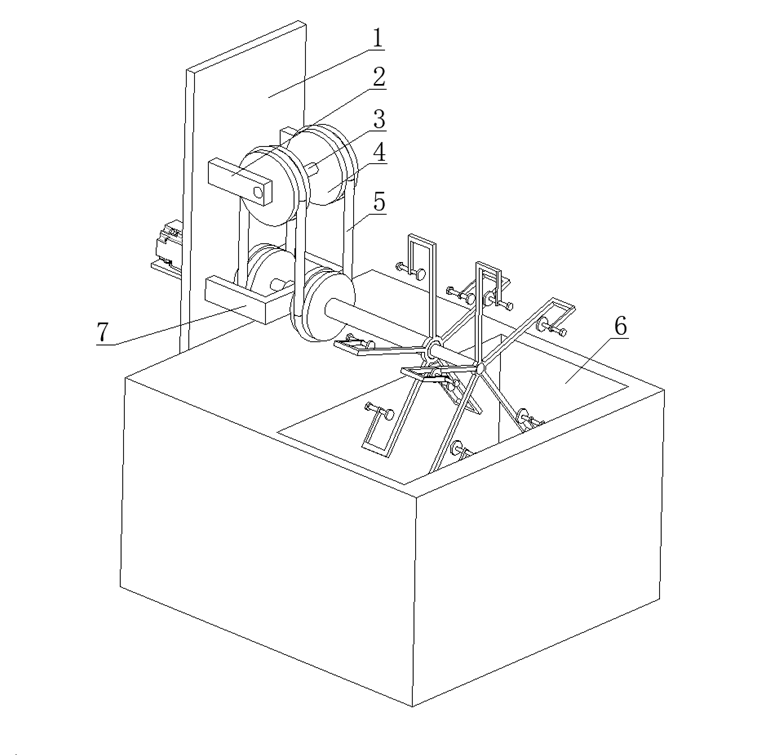 本发明涉及机械加工技术领域,具体为一种机械零件烤蓝用的自动切换式的烤蓝 吊具。